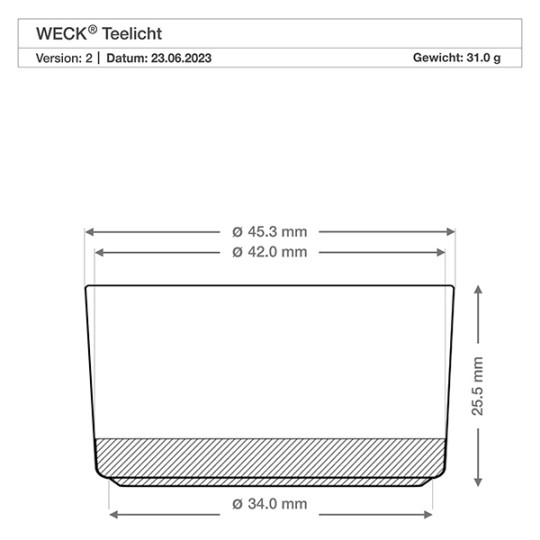 Gewicht Teelicht-Glas, je Stück: 33 g